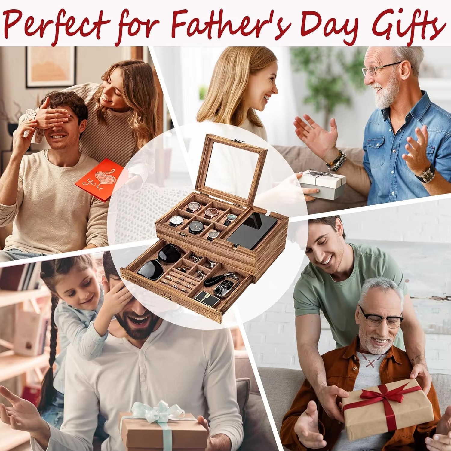 Watch Box Organizer 6 Slot Men Jewelry Box Display Storage Solid Wood Jewelry Case Organizer Wooden Holder Collection Box